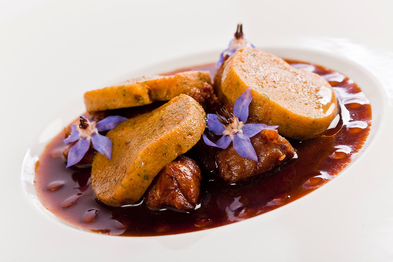 Contamos con productos maravillosos y platos tradicionales en los que me inspiro cada día para reinterpretarlos según mi filosofía de cocina, pero todo, absolutamente todo lo que sale de mi cocina, va impregnado de la esencia de Granada.