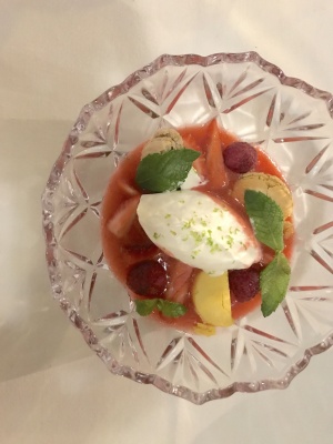 De repetir también fue el gazpacho de tomate Huevo de Toro con tartar de atún y sandía. Esta fruta va osmotizada con vinagre de frambuesa aportándole un toque crujiente al plato. Muy sabroso.