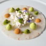 Ingredientes: Cuatro pichones de Araiz (Navarra) / 5 chalotas / Una copa de Pedro Ximénez / 100 gramos de foie / 4 mangos y 80 gramos de azúcar / Pan de miel / 6 gramos de agar-agar / 10 gramos quinoa / Flores y Hierbas aromáticas