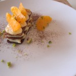 Cortar la baguette en tostaditas de 0,5 cm de grosor. Tostar en el horno. Picar las verduras en cuadrados de 3 mm. Picar los piñones y la maria luisa y colocar todo en un bol.