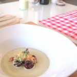Aliñamos con aceite de oliva, sal, salsa de soja, mostaza y el jugo de medio limón. Mezclamos y colocamos en un molde, o en forma de quenelle en el plato. Ponemos las tostadas en forma de abanico y los germinados de alfalfa. Decoramos con unas hojas de maria luisa y un chorrito de aceite de oliva.