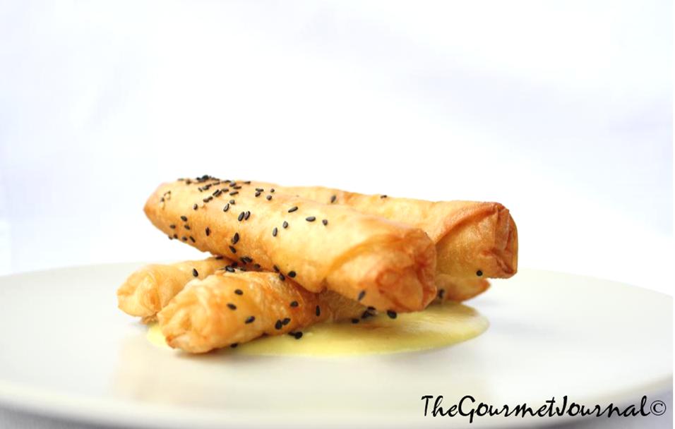 Cortar la lámina de pasta phillo en cuatro y estirarla. Pincelar cada capa con mantequilla fundida para que no se abran al freírlos. Colocar el relleno y enrollar hasta llegar al final, nuevamente pintaremos con mantequilla para cerrarlos.
