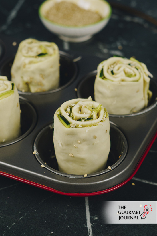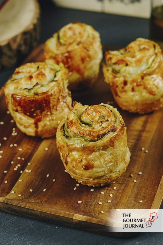 Ya no tienes excusa, haz la lista de la compra, llégate al mercado y escoge unos buenos calabacines para preparar estas rosas vegetales envueltas con una lámina de hojaldre.
