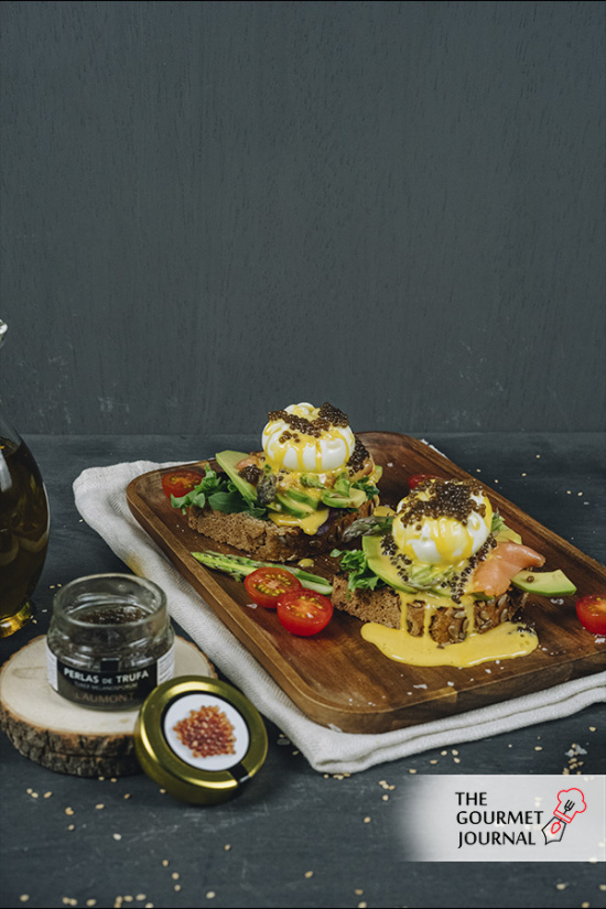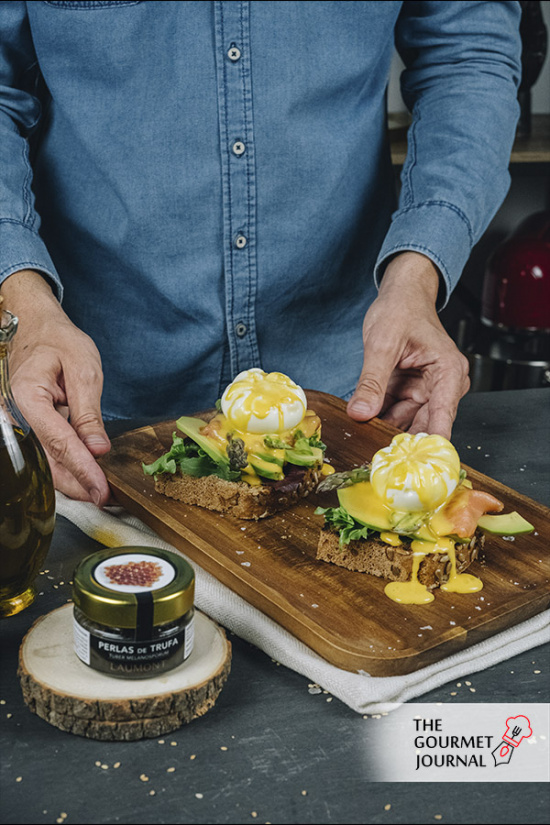 Por último, disponer las perlas de trufa negra Laumont sobre los mismos.